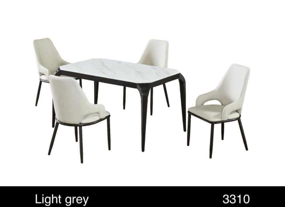طاولة طعام بسطح رخام أنيق مكونة من 4 كراسي مريحة، تجمع بين الفخامة والعملية لتضفي جمالًا خاصًا على غرفة الطعام. مثالية للعائلات الكبيرة أو لاستضافة الضيوف في أجواء راقية.